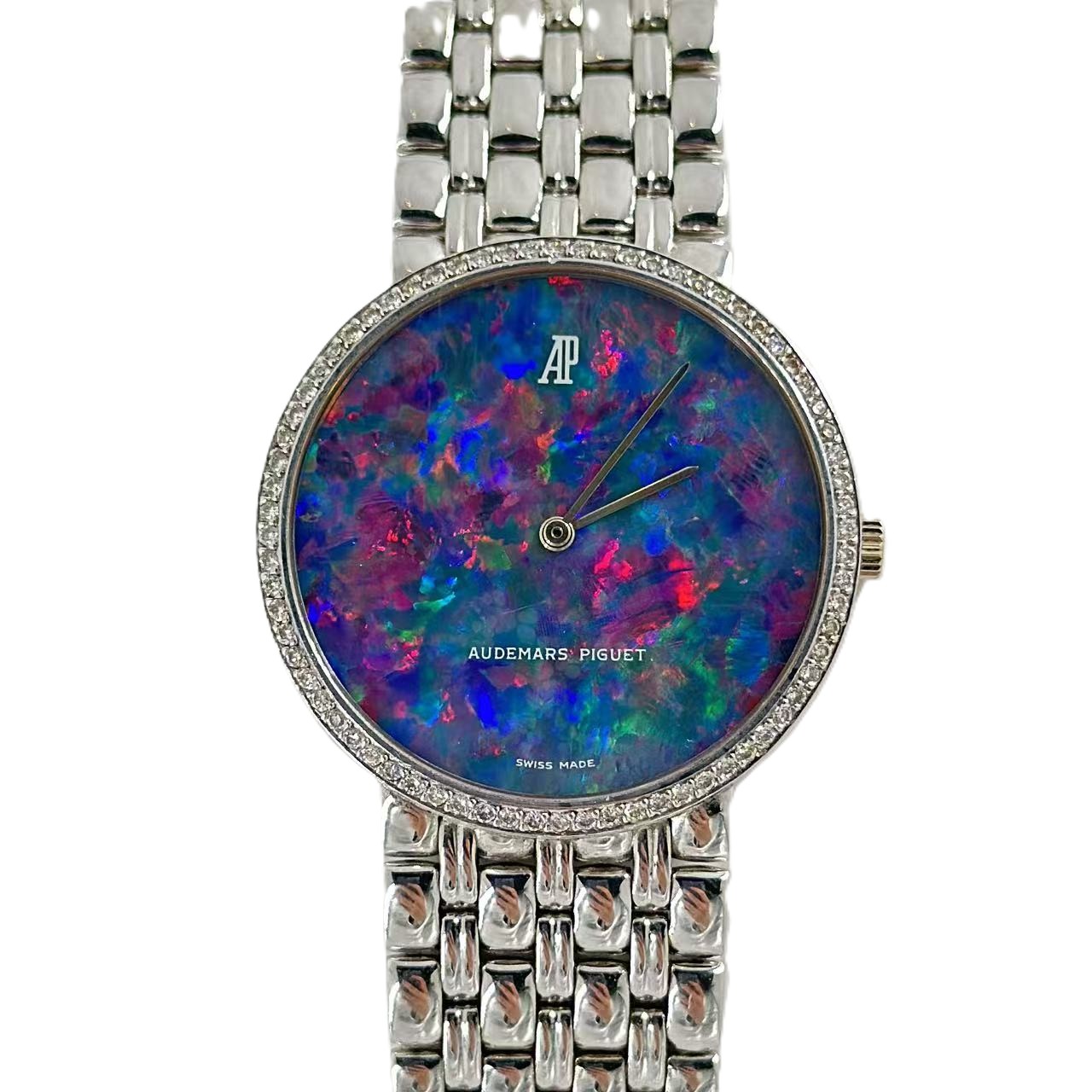 ヴィンテージ NEW AUDEMARS PIGUET 在庫なし(Sold Out) オパール(Opal)文字盤 手巻き KRS1671 ¥ 2,538,000- (inc.tax) お問い合わせ 【商品の説明】 管理番号:KRS1671シリアル:C*****文字盤:オパールサイズ:約31MM腕周り:約19CM素材:18KWG機械:手巻き付属品:箱(当社箱)