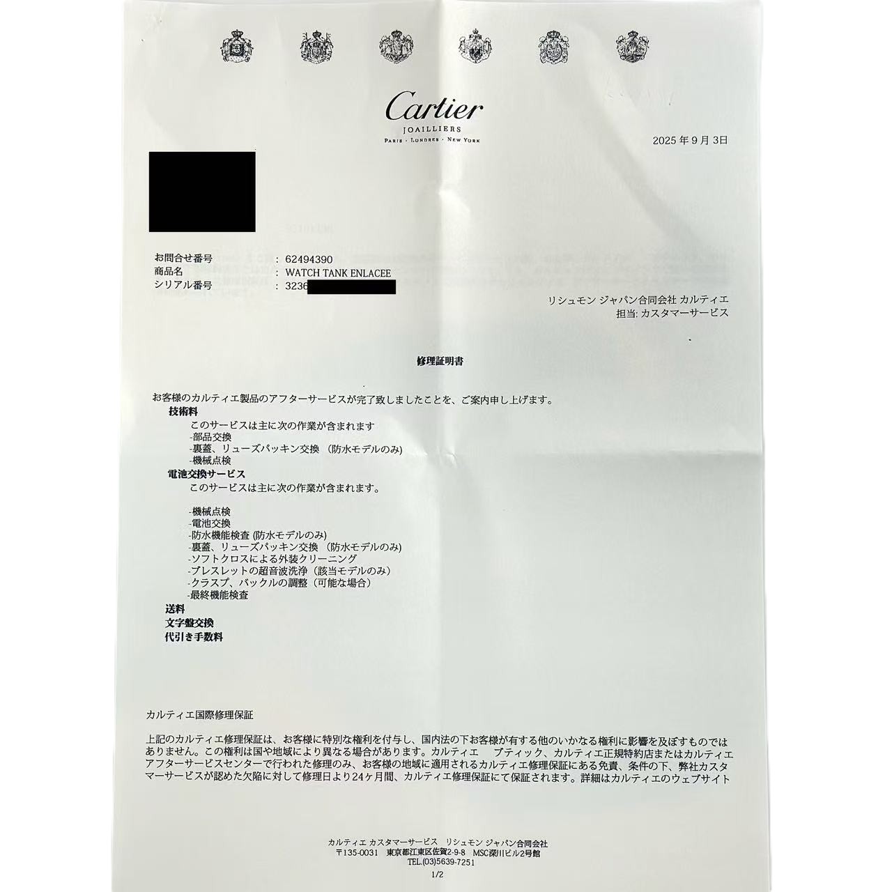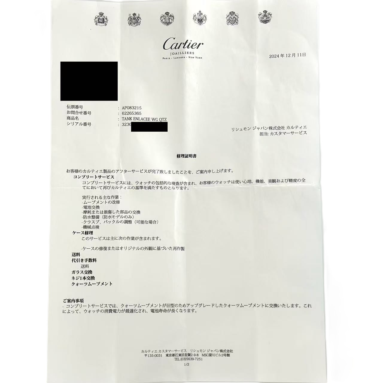 タンク アンラセ(Tank Enlacee) 2010年限定モデル Ref.WJ306014(3236) メーカー修理明細付 クォーツ KRS1569